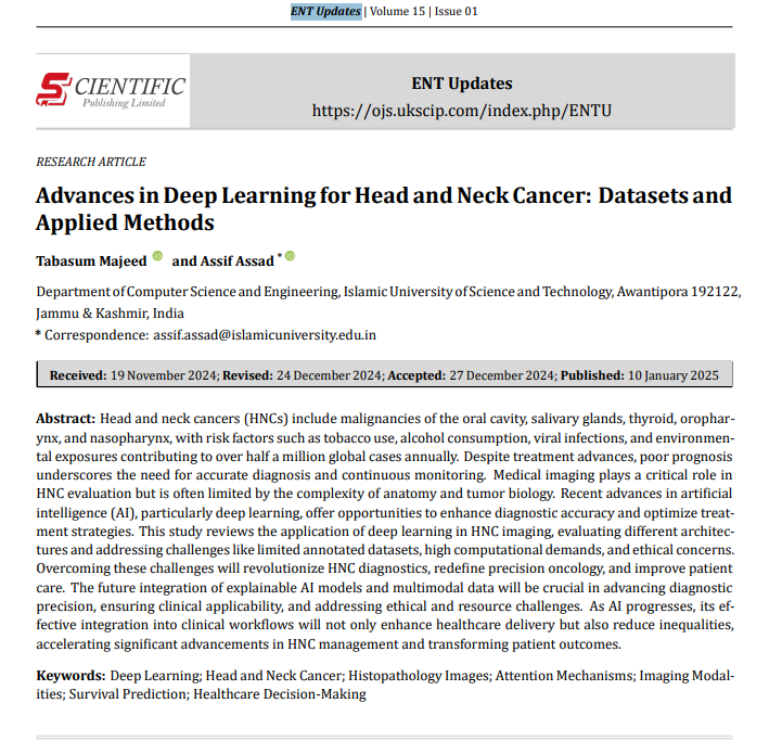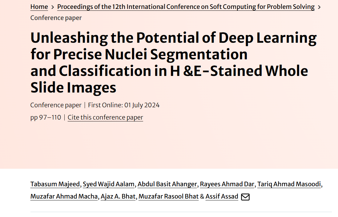 | Paper Presented / Published | Transfer Learning approach for Classification of Cervical Cancer based on Histopathological Images | 2023 3rd International conference on Artificial Intelligence and Signal Processing | 978-1-7281-4458-0. | 18-03-2023 | 20-03-2023 |