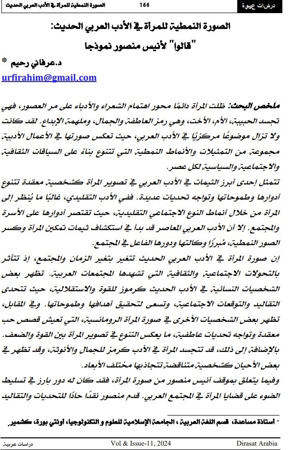 Paper Presented / Published | لكتابة النسوية في الادب العربي-نوال السعداوي أنموذج | contemporary Arabic literature: Trends, schools and legends | N.A | 03-06-2021 | 03-06-2021 |