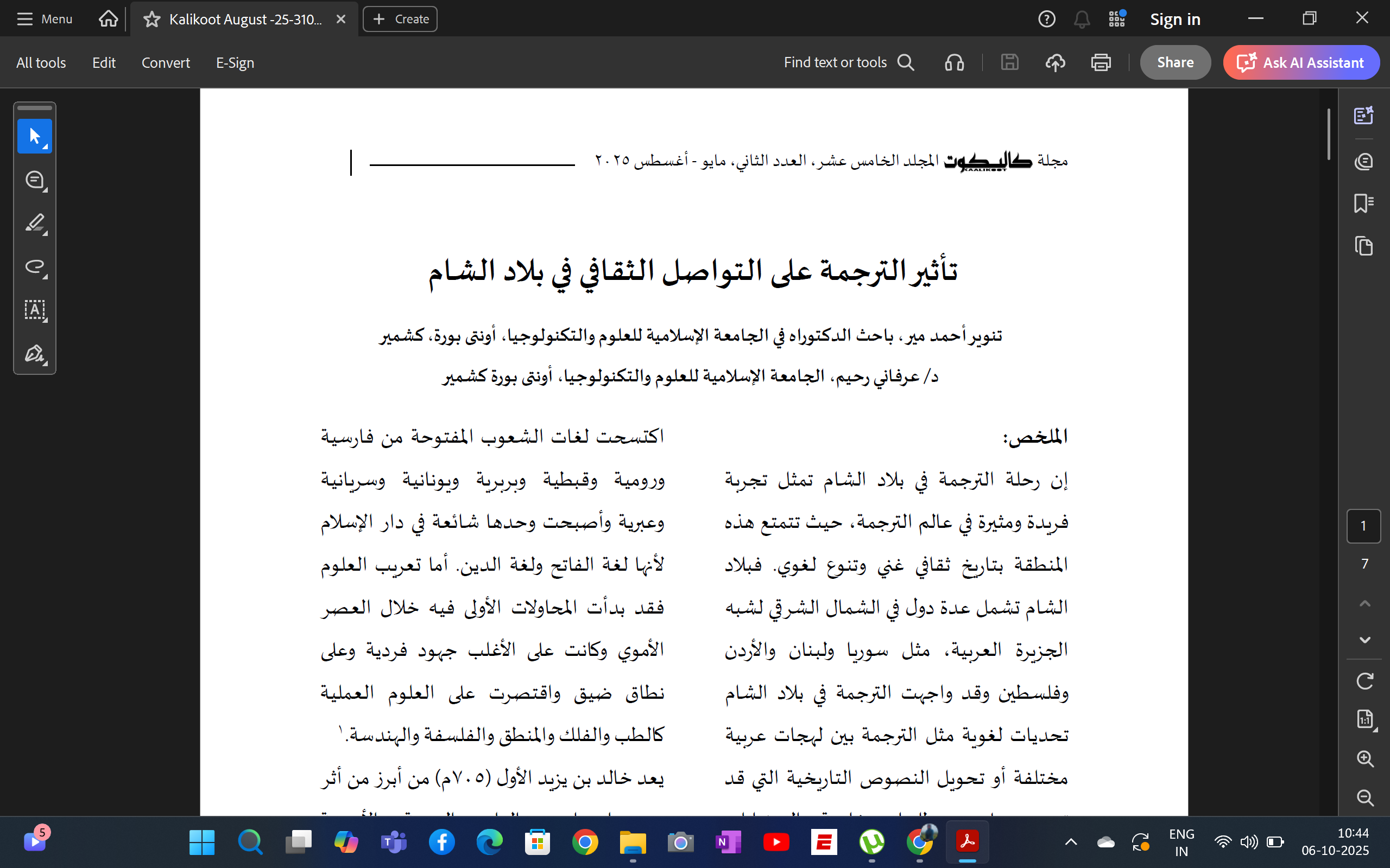 Paper Presented / Published | Maqamah Unveiled: Tracing the Historical Tapestry of an Arabic Literary Epoch | Development of Science and Arts in the Abbasid Period | | 17-01-2024 | 18-01-2024 |