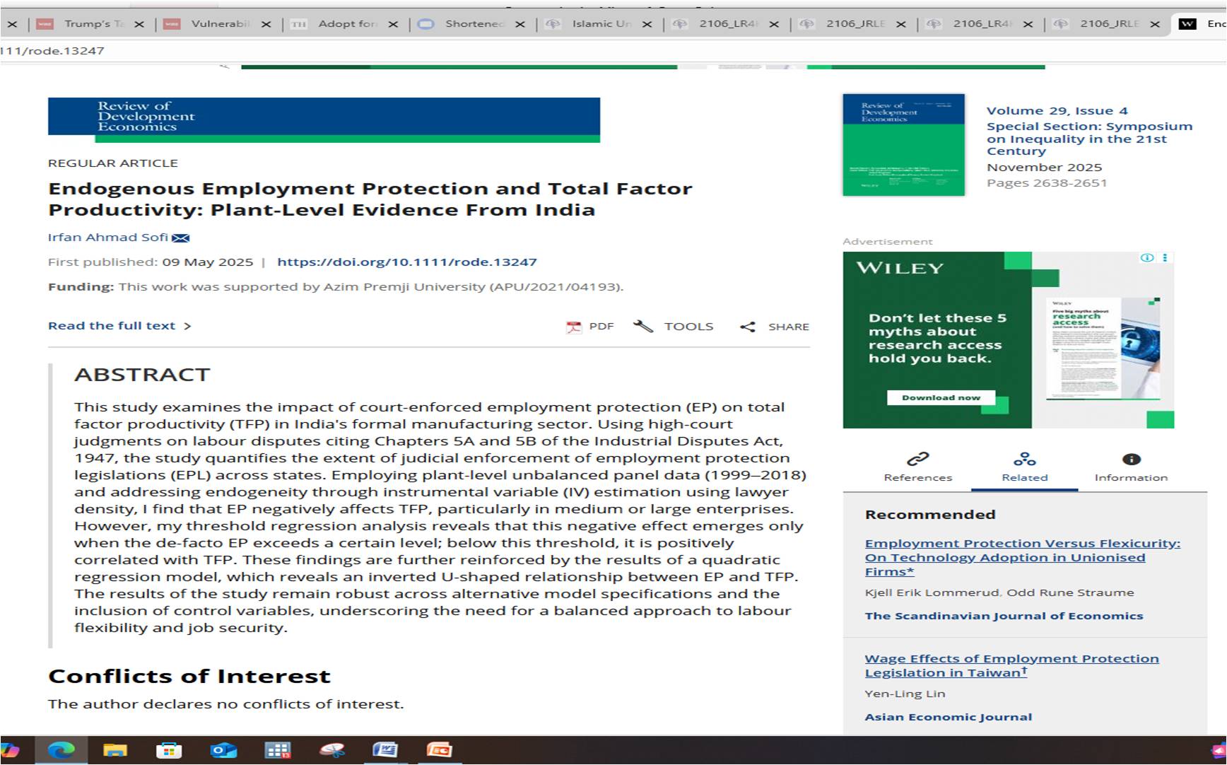 | Campus Enrichment Activity | One Day Seminar on Impact of hiring and firing laws on factor productivity: A unit level analysis using judicial outcome index | Department of Economics, IUST | Azim Prejmi University Bangaluru | Less Than One Week | Offline | 11-03-2024 | 11-03-2024 |